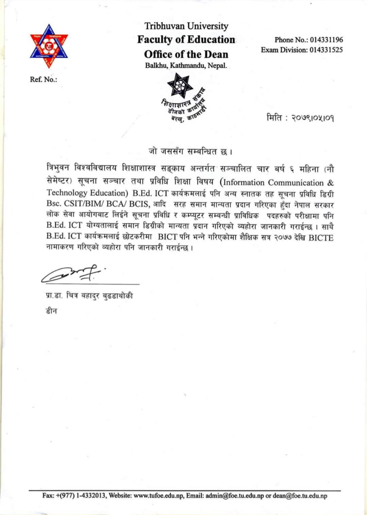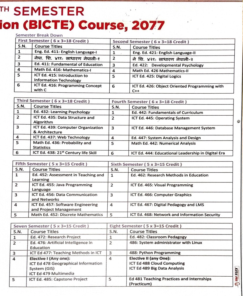 Access the Re-structured Bachelor of ICT Education (BICTE) Course, 2077 :