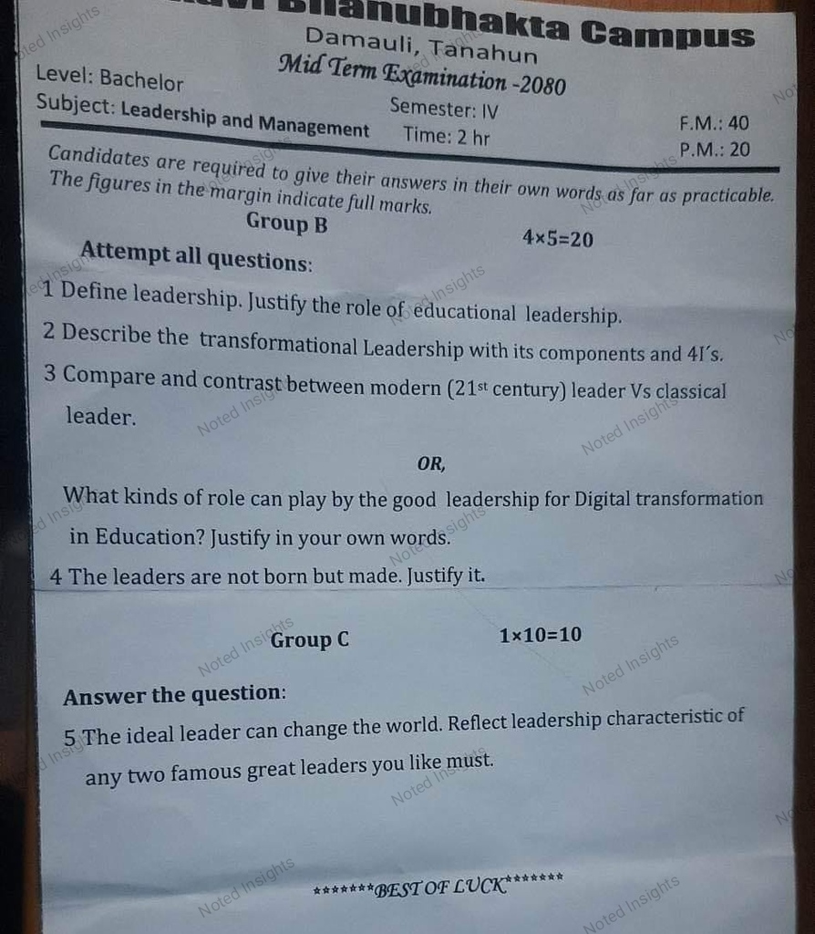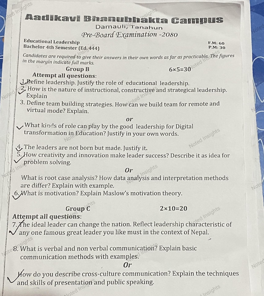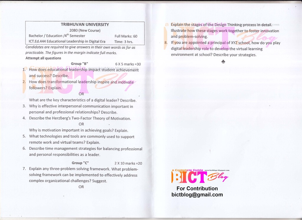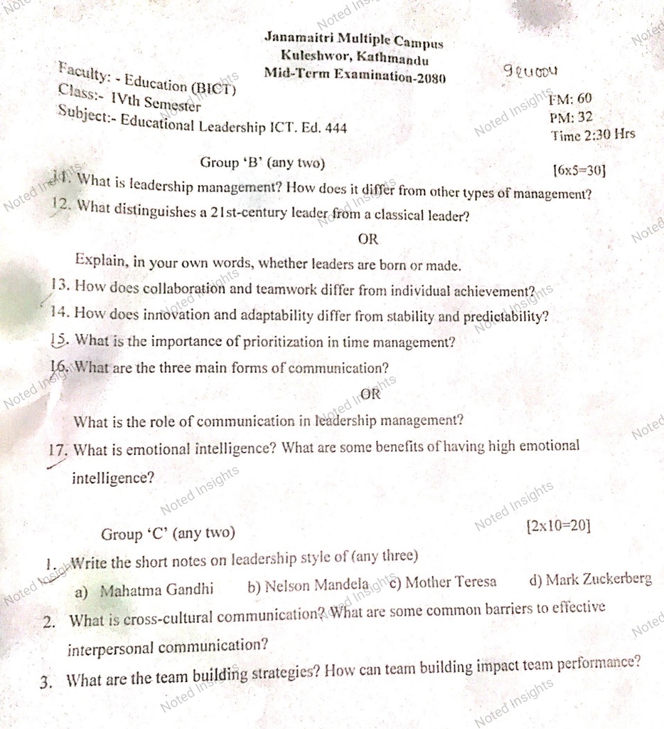Greetings, knowledge seekers! Welcome to the virtual haven of educational enrichment – notedinsights.com. Today, we are excited to present a valuable resource tailored for students navigating the realm of Educational Leadership, a pivotal subject in the Bachelor of Information Communication Technology and Education (BICTE) program. Join us as we open the treasure chest of past questions, generously shared to illuminate the path to academic excellence.
