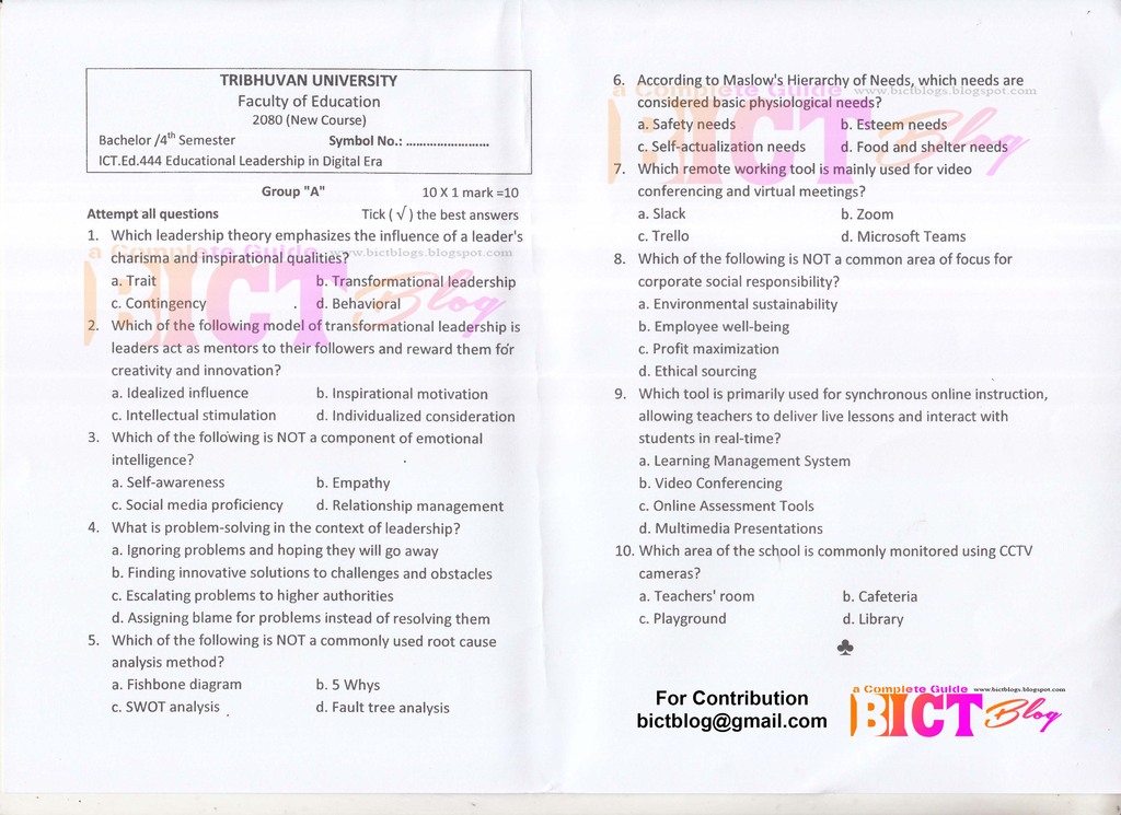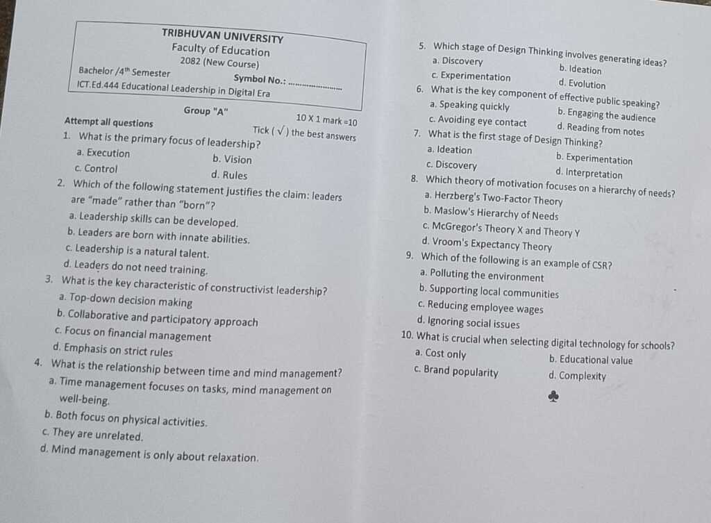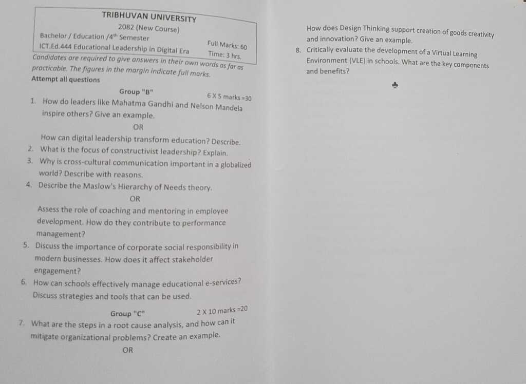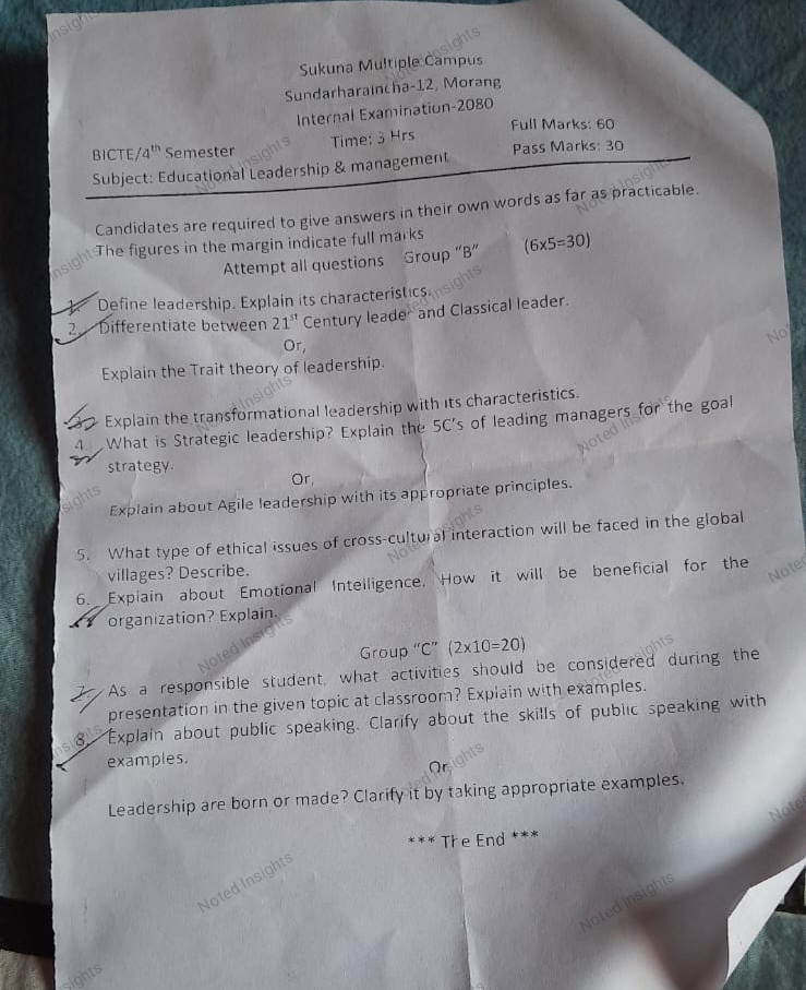 Greetings, knowledge seekers! Welcome to the virtual haven of educational enrichment – notedinsights.com. Today, we are excited to present a valuable resource tailored for students navigating the realm of Educational Leadership, a pivotal subject in the Bachelor of Information Communication Technology and Education (BICTE) program. Join us as we open the treasure chest of past questions, generously shared to illuminate the path to academic excellence.